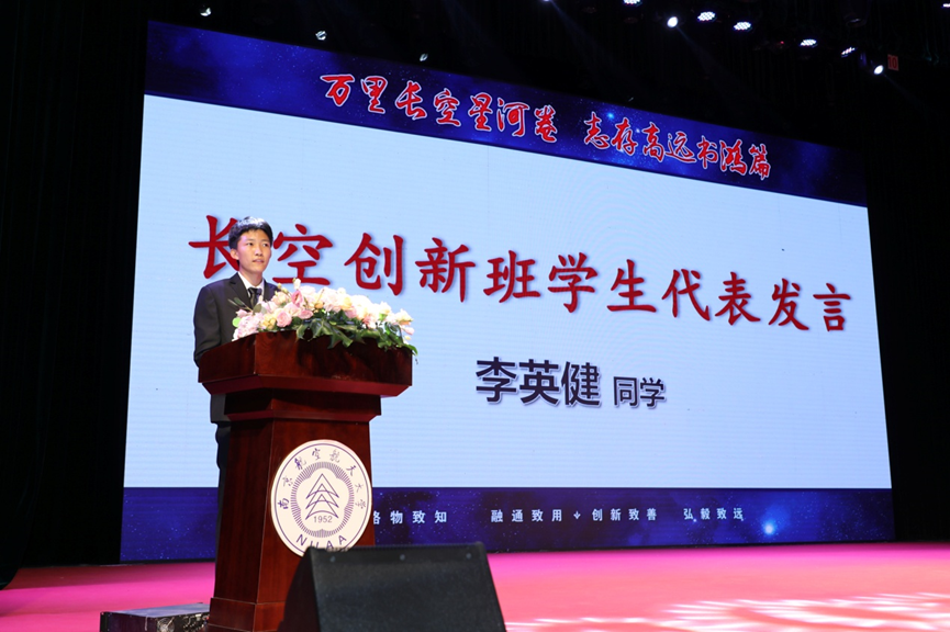 在开展航空航天大类培养改革的同时,必赢3003no1线路检测中心也扎实推进拔尖创新人才培养模式改革,“长空创新班”由此应运而生。826名学生申请,历时两月,多轮选拔,无数个“长空十二时辰”,60名南航新生以优秀的综合素质成功入选,成为首届“长空创新班”学生。李英健同学代表长空创新班首届学生发表感言。