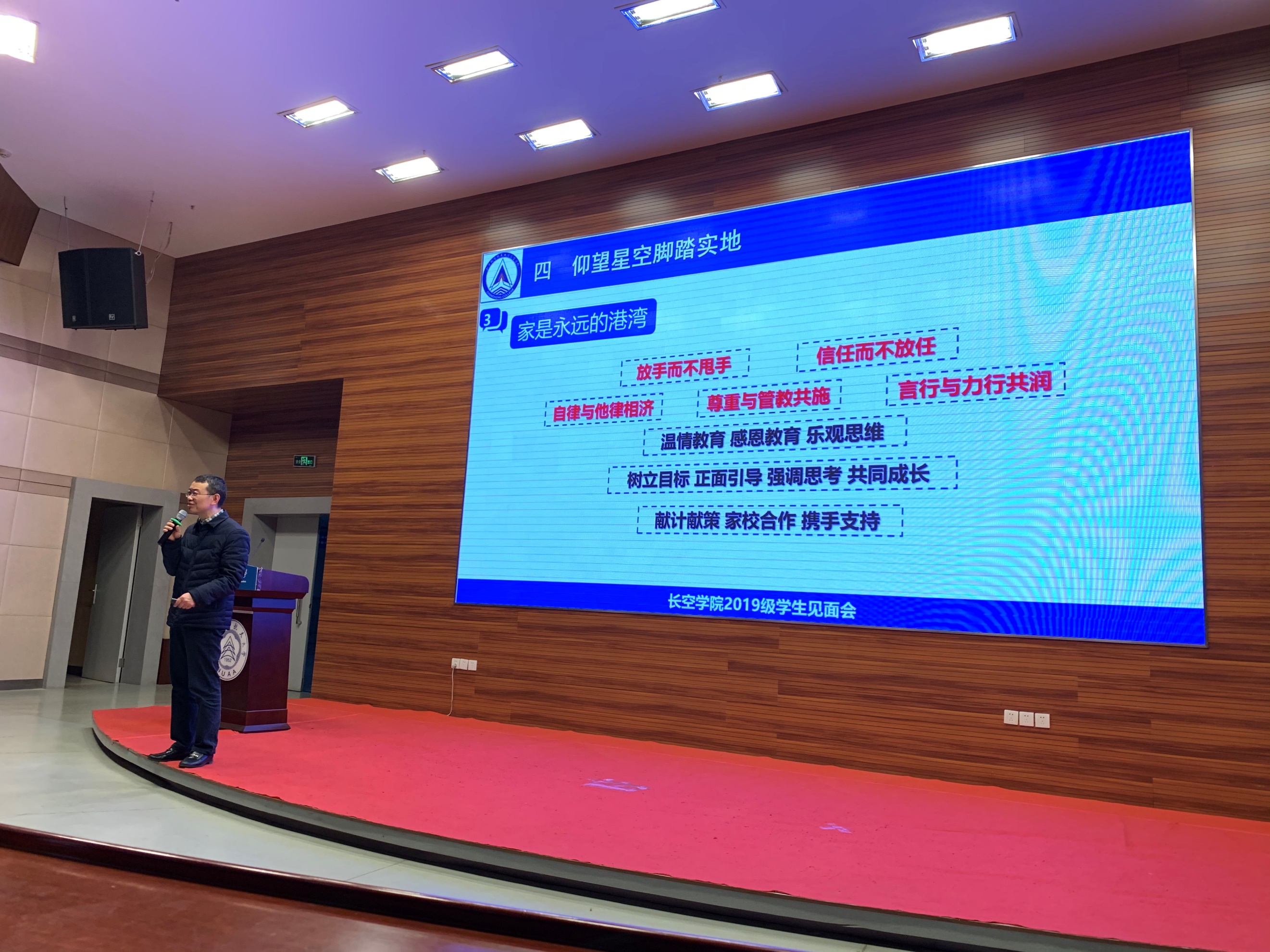 为促进院领导与学生的交流,把握学生学习、生活、思想情况,探索学生成长成才规律,提高必赢3003no1线路检测中心人才培养改革工作的针对性和科学性,必赢3003no1线路检测中心搭建了“院长有约”交流平台。继“一杯咖啡的故事”师生交流、学风建设主题班会、个体学生谈心谈话等交流活动后,近日,必赢3003no1线路检测中心常务副院长蒋彦龙走进必赢3003no1线路检测中心2019级学生年级大会,就 “长空论道,求实筑梦”主题与学生展开交流。
