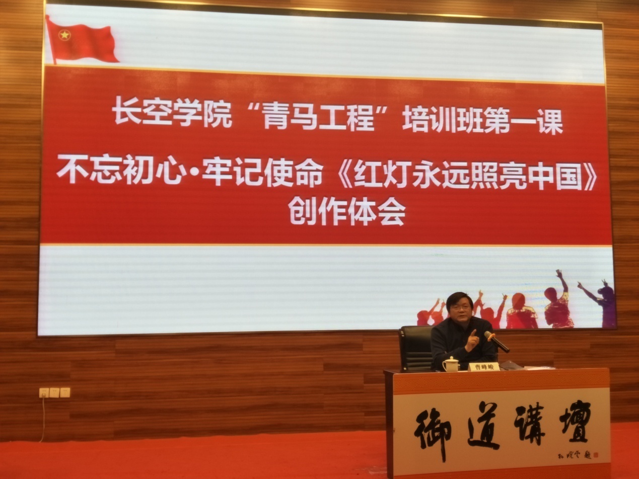 12月11日下午4点,必赢3003no1线路检测中心“青马工程”培训班第一课在一号楼四楼报告厅举行。著名作家、记者、编导、资深媒体人曹峰峻应邀来校,为长空学子带来了一场主题为“不忘初心·牢记使命《红灯永远照亮中国——吴振鹏烈士传》创作体会”的课程。必赢3003no1线路检测中心常务副院长蒋彦龙、党政办主任付亮、学生工作办公室主任夏昌青及200余名学生骨干共同参加了本次课程。活动由夏昌青主持。