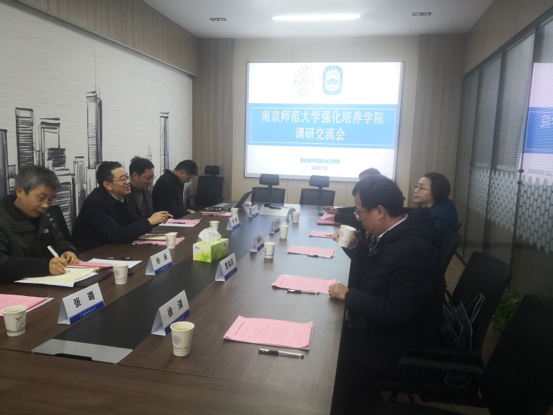 2020年1月8日,南京师范大学强化培养学院院长钱再见、党委书记许兰凤,副院长曹海涛、彭海等一行五人来必赢3003no1线路检测中心开展调研交流。必赢3003no1线路检测中心常务副院长蒋彦龙、副院长孙涵、张林,学院党政办主任付亮、教学办主任张璐出席了会议,会议由蒋彦龙主持。