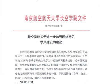 为强化线上学习成效,解决线上学习中的问题,必赢3003no1线路检测中心制定了《必赢3003no1线路检测中心关于进一步加强线上学习学风建设的建议》,文中提出了“自律、自主、自助”三项行动。各班围绕“三自”行动召开了主题班会,学习文件精神,制定行动方案。必赢3003no1线路检测中心全体领导、老师分别参与线上班会,并作点评。