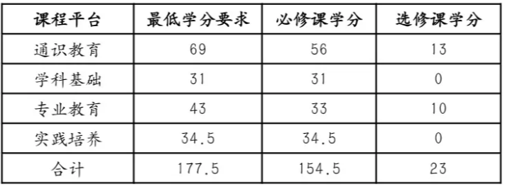 _ | 4.2 卓越班 培养具有良好的科学、文化和工程素养,具有良好的职业道德和敬业精神,具有高度的国家意识和社会责任感,较系统地掌握飞行器动力工程的专业基础知识、基本理论和基本技能,具有较强的创新意识、团队合作精神和一定的国际学术视野,工程设计与实践能力强,能够在航空航天及相关领域从事技术研发、工程应用、工程管理、使用维护、科学研究或教育教学等工作的高素质专门人才和未来工程精英。 学生毕业后能够在航空、航天、民航等行业从事飞行器动力装置和其它热动力机械的科学研究、工程设计、生产运行和技术管理等工作;也可进入国内外高等院校、科研院所继续深造。 专业核心课程如下表所示: 本专业学生在各课程平台中所修读的课程学分数需满足培养方案中各课程平台最低学分要求,在校期间学生需修满177.5学分方可毕业。各课程平台最低学分要求如下: |