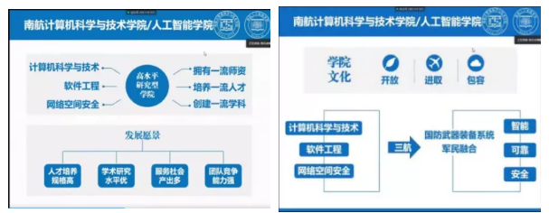 陈兵院长携六位计算机学科不同研究领域的教授为长空创新班学习深度解读学院概况。学院通过与传统优势学科强强联手,形成了具有三航特色的“AI+X”的尖、精、高发展新趋势。通过打造一支年轻化、精英化、国际化的强有力师资队伍,着力培养具有系统能力、创新精神、国际视野的社会栋梁与工程英才。学院长期发展中形成了案例牵引,项目驱动,以战为训,以赛带练的实践能力培养方案,育人成果突出。同时,学院科研工作硕果累累,在学科基础、社会、国防方面都获得巨大成绩。“未来已来,时不我待”,陈院长最后勉励创新班的同学们应时代之势,引时代之新。