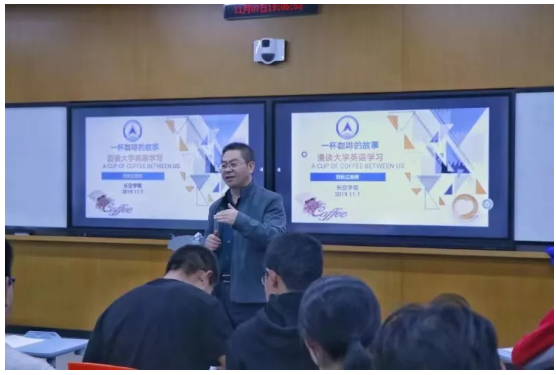 11月7日晚,“一杯咖啡的故事”系列活动之“漫谈大学英语学习”主题交流顺利开展。外国语学院副院长刘长江老师与必赢3003no1线路检测中心近五十名学生相聚于7407智慧教室,共同探讨大学英语的“学习秘籍”。在长达三个小时的交流中,刘老师幽默风趣、热情激昂的讲解将同学们完全带入其中。教室里欢声笑语不断,大家在轻松愉悦的氛围中获得了许多宝贵的学习经验,明确了大学英语学习的定位。