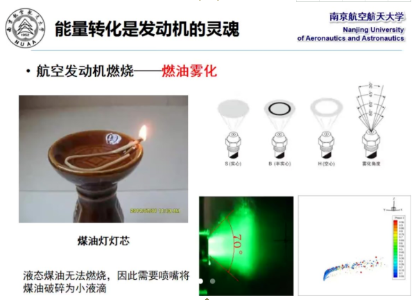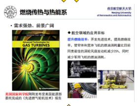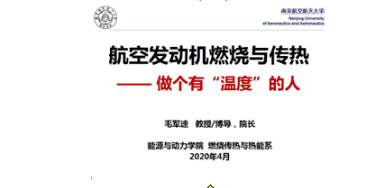 紧接着,毛老师以生活中煤炉燃烧为例,引导学生思考热能的来源——燃烧,从生活深入到航空领域,并用液态煤油灯的燃烧类比航空发动机的燃油雾化技术,同时用自然现象作比喻,阐释了发动机燃烧组织和火焰稳定问题,深入浅出,简单易懂。毛老师介绍了三级旋流一体化分区供油技术和我校老师进行的加力燃烧实验等,指出高热容燃烧的困难和加力燃烧、冲压燃烧对军用发动机的关键作用。最后毛老师具体介绍了航空发动机燃烧的新发展:低污染燃烧、超音速燃烧、热声耦合等,并从相关背景、概念原理、现今已有技术、未来发展趋势等角度分别作了详细解读。有了燃烧,自然涉及传热。在传热的框架下,毛老师点明热力循环性能的关键就是最高循环温度,并以涡轮需要耐受高温高速燃气的冲击同时需要高速旋转为例,指出热端部件冷却和涡轮叶片冷却技术十分困难,由此提出要大力发展强化冷却、燃烧室冷却、高效气膜冷却、基于流场精细组织的冷却等新兴技术,同时在材料方面发展高温复合材料的热-力耦合技术等,并将改善航空发动机空气系统的冷却、封严、轴向力平衡、间隙控制、防冰等技术作为空气系统方向的研究重点,其中该方向的新发展还包括冷却介质品质提升,实现从0到1的创新。