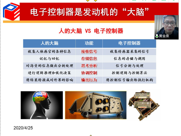 对于第一个问题,黄老师解释了自动控制的含义,并以空调和航空发动机控制系统为例具体介绍了被控对象、控制器、传感器、执行机构等自动控制的主要环节,阐述了反馈控制的基本原理。通过航空发动机的工作范围、工作状态、特性参数的变化以及引发的不良后果说明了发动机控制的必要性——保证发动机安全、高效地工作。将发动机的电子控制器与人的大脑、发动机全权限数字电子控制(FADEC)系统与人的神经系统进行对照,用航空发动机的“大脑”和“神经系统”作比喻,形象说明了控制系统的工作原理及重要性。黄老师列举了控制系统的主要功能,并重点强调了航空发动机是一个多变量控制系统,是飞机的“心脏”,要在性能与安全的边界、不同飞行条件和多种工况以及高温高压高振动的“恶劣环境”下正常工作,这对于控制精度、响应的快速性、可靠性和维修性要求非常高,解答了“为什么航空发动机控制十分困难”,同时黄老师真诚期待新同学的加入,使发动机和控制系统设计更加完美。