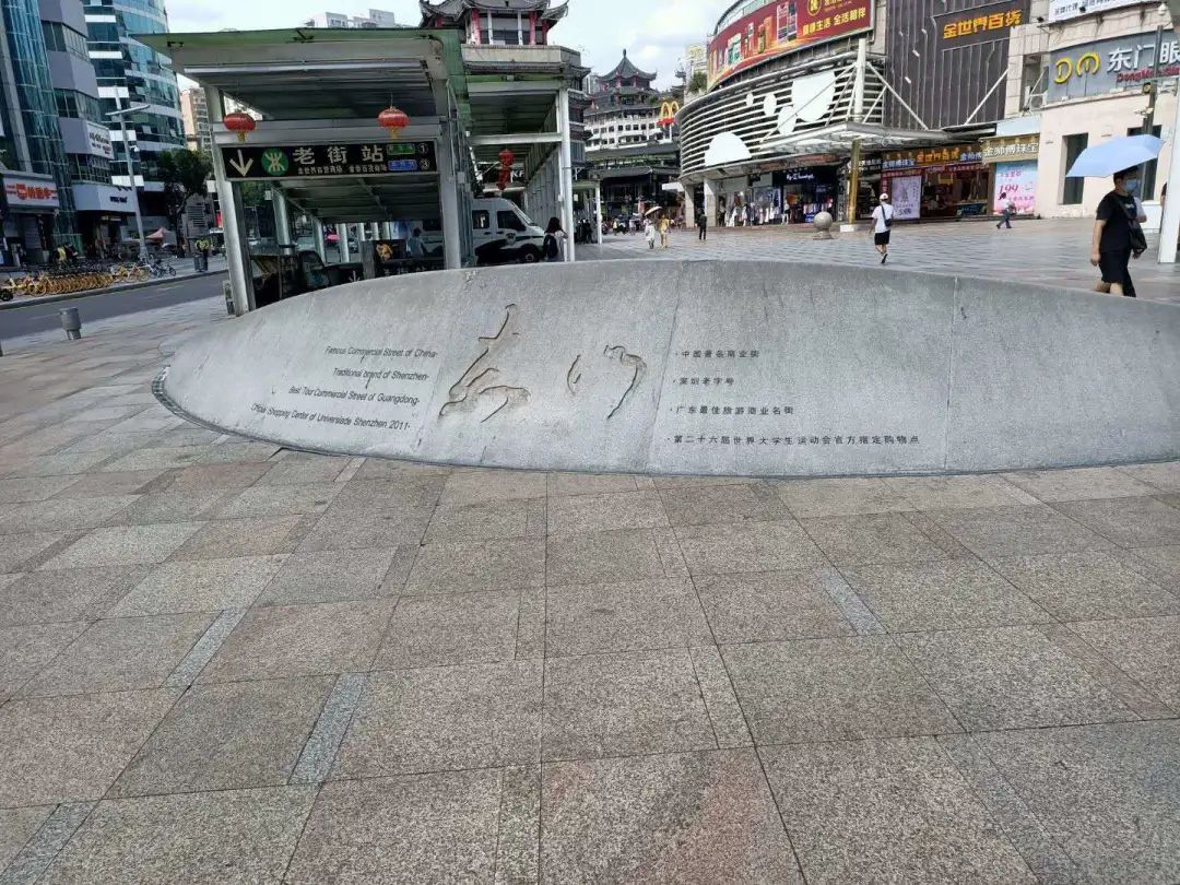 我们先后参观了三个地点,首先是邓小平同志画像,画像正对着深圳国贸大厦、地王大厦、市民中心等深圳标志性建筑,而这版画像不同于前三版之处就在于其背景中反映着这些标志性建筑从改革开放之初至今的变迁。随后,我们参观了深圳书城罗湖城,“书城”这一概念最早由深圳提出,罗湖城也是国内建成的第一个书城。自改革开放以来,深圳不仅注重经济建设,也从未忽视城市文明的建设。最后,我们踏入东门步行街,作为深圳形成时间最早、最成熟和最具规模的商业旺区,漫步其中仍能感受到它曾经的繁华。