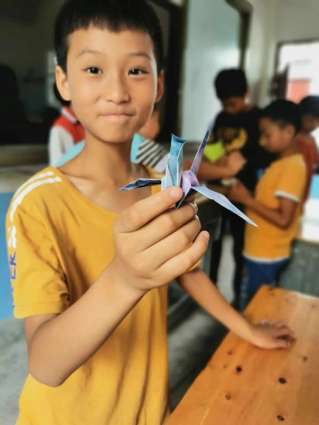 图为7月24日老师教大家折纸。折纸本身是一种动手又动脑的益智活动,既是一种玩具,也是一项思维活动,在孩子们小的时候带领他们学会模仿,开拓思维,自己找寻物质最原始的本质也不失为一种教学的好方法。看到自己折成的千纸鹤不禁要向大家炫耀炫耀!