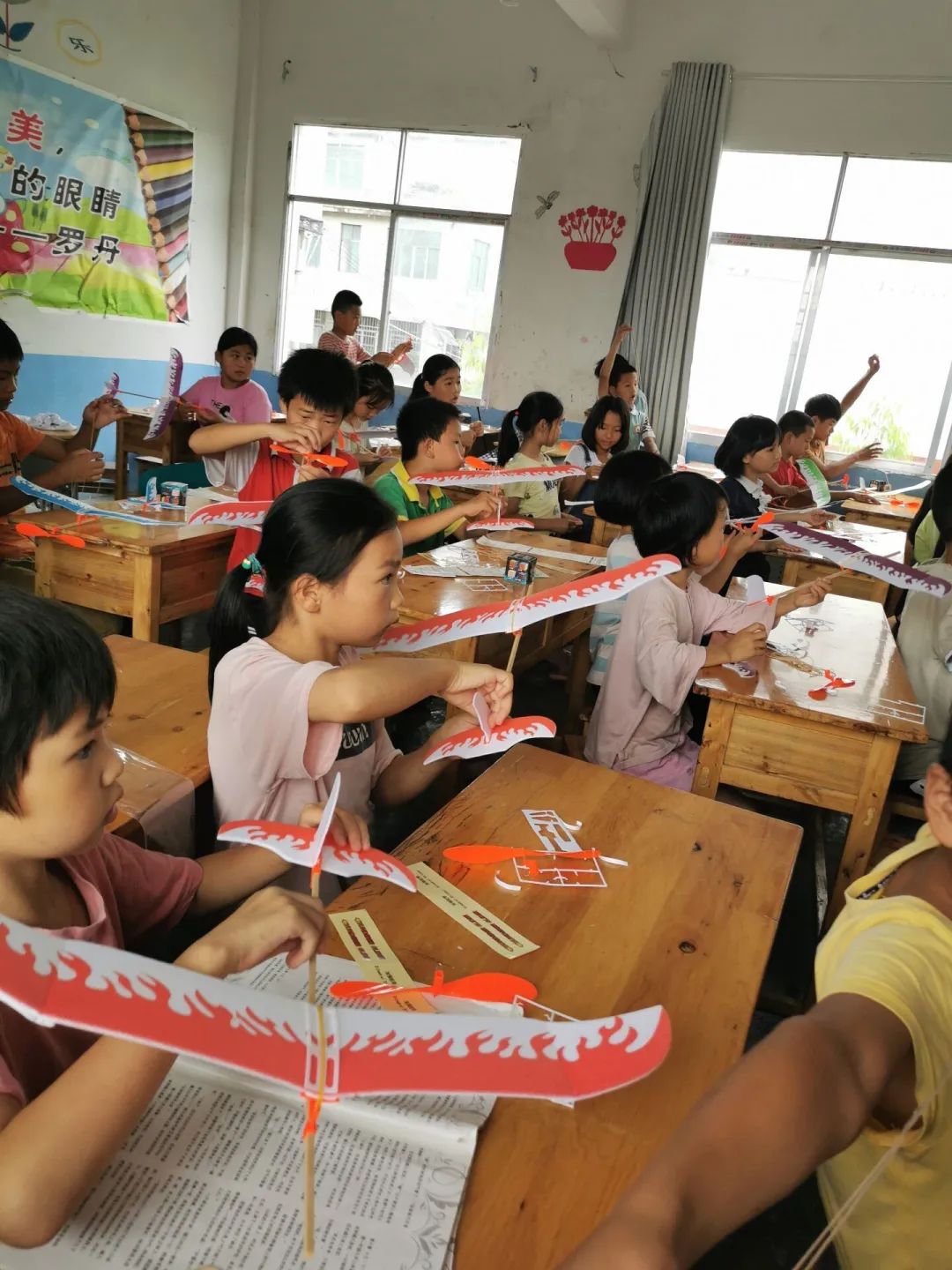 此次实践活动让团队成员收获良多,我们看到了孩子们一双双渴求知识的眼睛,感受到他们最珍贵的感情。我们所做的不仅为了传播知识,更要在这里助力启航,放飞梦想。最后,团队成员以一节航模课结束了本次支教活动。老师们带着同学们一个一个制作出属于自己的航模,然后一起放飞。看着航模高高飞在天空中,就像是这群小朋友心中的梦想迎风启航,而我们所做的,就是为他们的梦想插上翅膀,助力他们在广阔的天空翱翔。