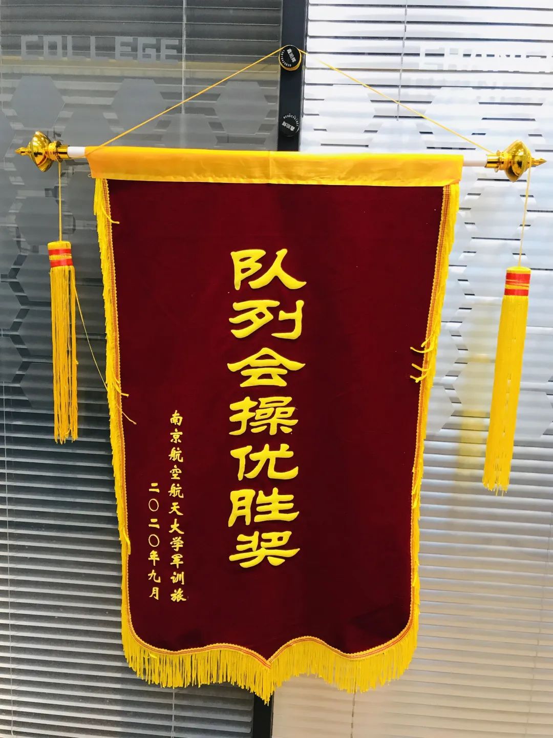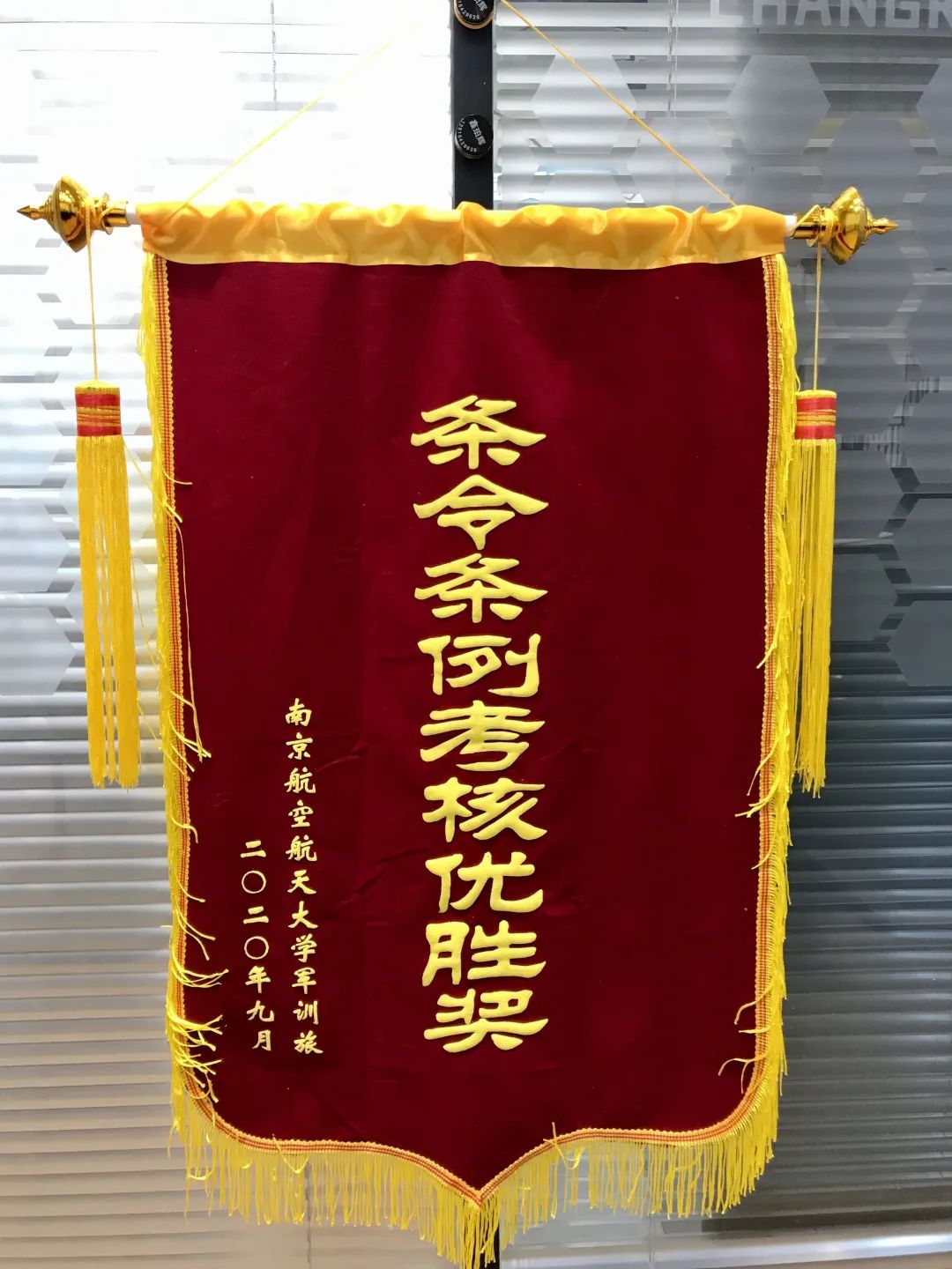 在2020级本科生军训表彰大会暨成果汇报大会上,必赢3003no1线路检测中心荣获队列会操优胜奖,条令条例考核优胜奖,优秀方阵奖三个单项奖,并荣获“军训工作先进集体”荣誉称号。这些荣誉是十余天的泪水与汗水交织而成的,是七百余名长空学子努力拼搏得来的,迎风招展的锦旗,熠熠闪光的奖杯,是对新一届长空学子最美丽的回报。