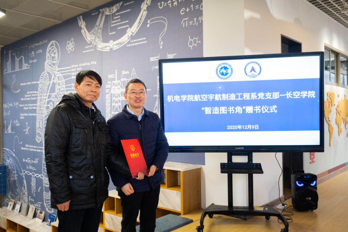 随后,袁智强、陈文亮和张臣现场为学生赠书,蒋彦龙代表必赢3003no1线路检测中心向机电学院航空宇航制造工程系党支部颁发捐赠证书。飞行器制造工程卓越工程师班学生代表刘子羽发表感想,他代表同学们感谢机电学院捐赠的图书和必赢3003no1线路检测中心打造的一流阅读空间,并表示会倍加珍惜,充分利用。作为班长,他还会带领班级同学更好地维护图书角,服务师生使用和阅读。