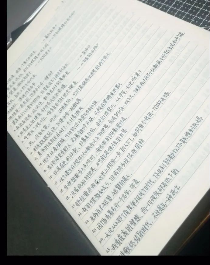 我从高中起就养成了摘抄的习惯。假期里,我坚持每天阅读诗集并摘抄,从中国名篇到外国佳作,从古代长诗到近代短诗。我希望在充斥着理性的大物、高数的生活里,能找一点感性的影子,读读他人对世界的看法,丰富自己的精神生活。