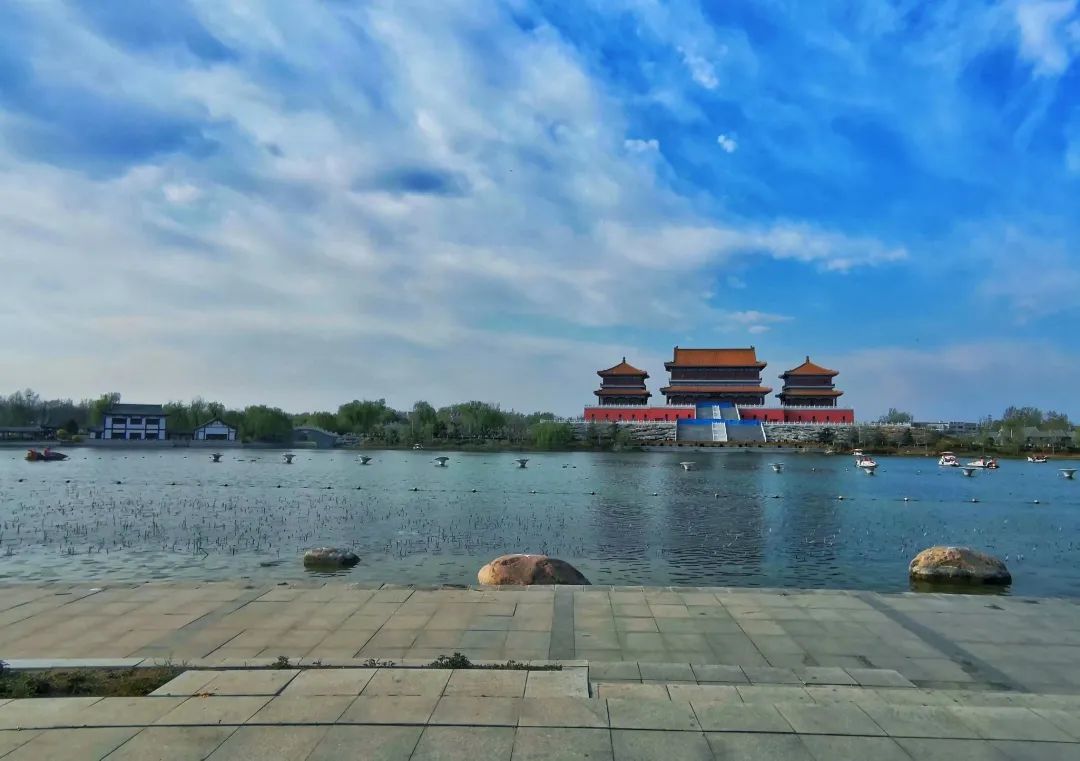 两周前我在秦皇岛农村老家,那里虽然没有城市里春意浓浓,但是桃花、梨花、杏花开的分外妖娆,我喜欢在老家的山腰和山脚下赏春,听着歌,赏着景,心情分外晴朗;回到唐山市之后,这里的春光将我震撼。在上周末我去家乡的曹雪芹公园散步赏春,相传曹雪芹祖籍丰润,图为公园中大观园的景色,大气雄伟,四周碧波荡漾,水天一色,美不胜收。
