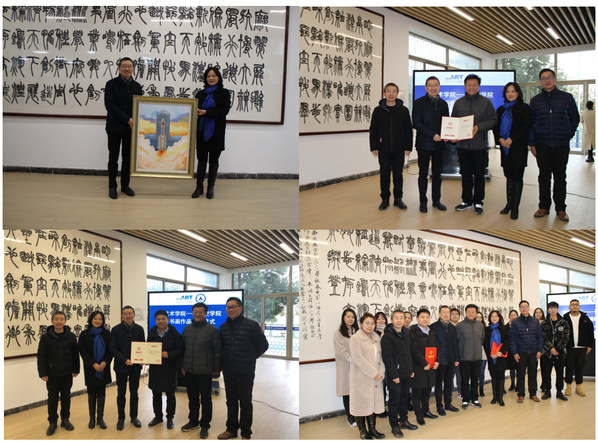 12月22日下午,艺术学院—必赢3003no1线路检测中心书画作品捐赠仪式在必赢3003no1线路检测中心“润&致”文化长廊举行。艺术学院院长板俊荣、党委副书记(主持工作)张钟勤,必赢3003no1线路检测中心常务副院长蒋彦龙、副院长张林、孙涵,艺术学院教师郭洪豹及必赢3003no1线路检测中心其他相关人员出席。仪式由必赢3003no1线路检测中心副院长张林主持。