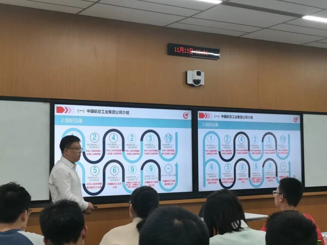 在讲述“何为大学”之前,王玉兵书记先从组织沿革,组织结构,和产业等方面简单介绍了中国航空工业集团,然后又从创建研究生院的背景、培养成就,到发展现状、未来展望、发展定位等方面对中国航空研究院研究生院做了一个简单的介绍,使同学们更加了解未来可供参考的深造方向。