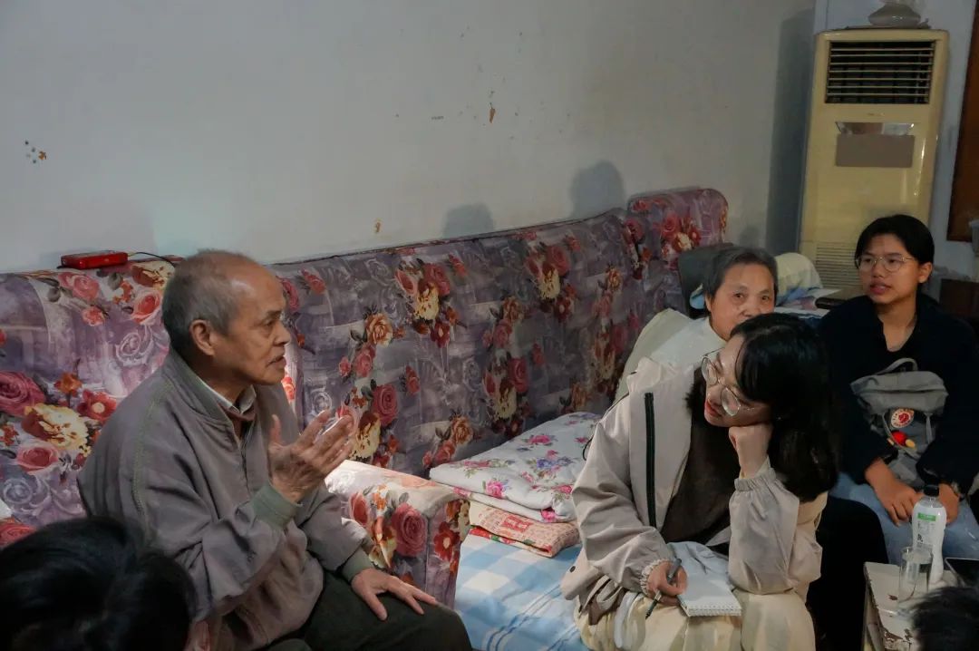 交谈结束后,我们总觉得缘分未尽,还想再与前辈们促膝长谈。为了抓住这次活动最后的尾巴,我们两人一组或散步、或乘车,一起陪教授们回家。“老师,您一个人住吗?身体还好吗?……”画面温馨得像极了爷爷与孙子孙女们饭后散步聊天呢!