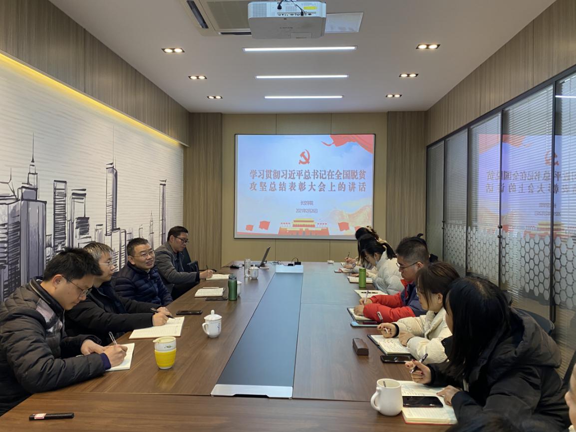 蒋彦龙首先带领大家学习了习近平总书记在全国脱贫攻坚总结表彰大会上的讲话,系统梳理了脱贫攻坚的光辉历程,深入阐释了脱贫攻坚战争胜利的来之不易与脱贫攻坚精神的内在意蕴。他指出,在学习的过程中,一是要以“大历史观”看待问题,多读党史、勤奋善思、不断总结,做到“学史明理、学史增信、学史崇德、学史力行”。二是要坚持党的领导,坚持中国特色社会主义,坚持改革开放,敢闯敢干、埋头苦干、真抓实干。三是要以“上下同心、尽锐出战、精准务实、开拓创新、攻坚克难、不负人民”的脱贫攻坚精神乘势而上、再接再厉、接续奋斗,以永不懈怠的精神状态、一往无前的奋斗姿态,书写人才培养崭新篇章。