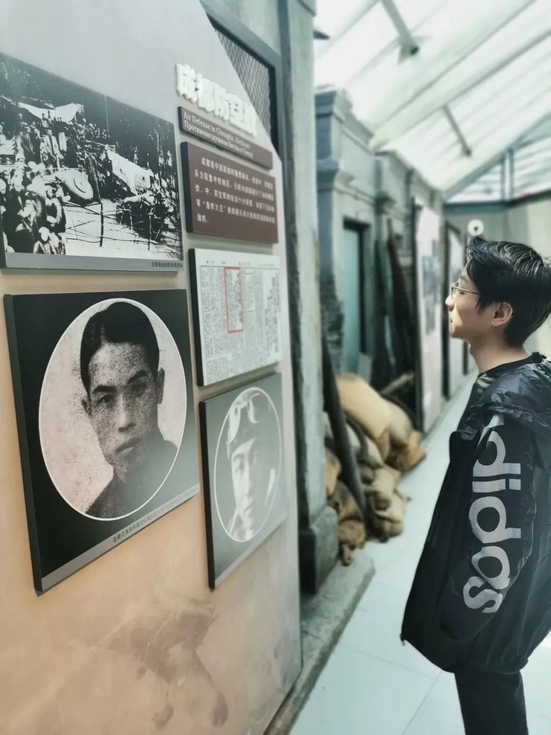 在门口看到威武的“正义之神”雕像后,队伍里每个人的眼神变得真挚而又肃穆。走入展厅,明明是模型的飞机,也仿佛有了年代感,身旁好像有飞机略过,炸弹机枪在耳畔轰鸣,一幅幅历史资料将我们带回那个战火纷飞年代。我们看到了在抗战期间中国空军的发展史,看到了保卫祖国的中华儿女以及世界爱好和平人士在抗战期间的付出与努力。