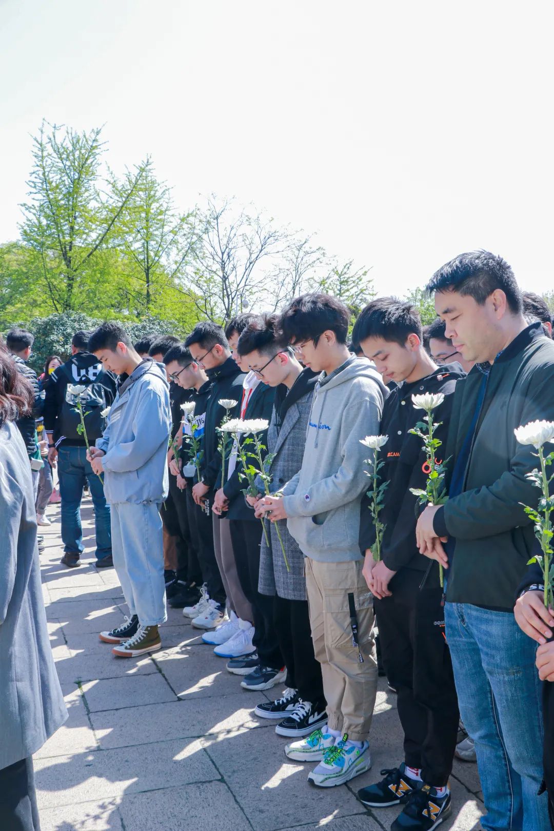 仪式的最后,全体同学向烈士们献花。放下那一朵朵雏菊,立下航空报国梦! 追思雨花英雄气,长存浩然天地间!