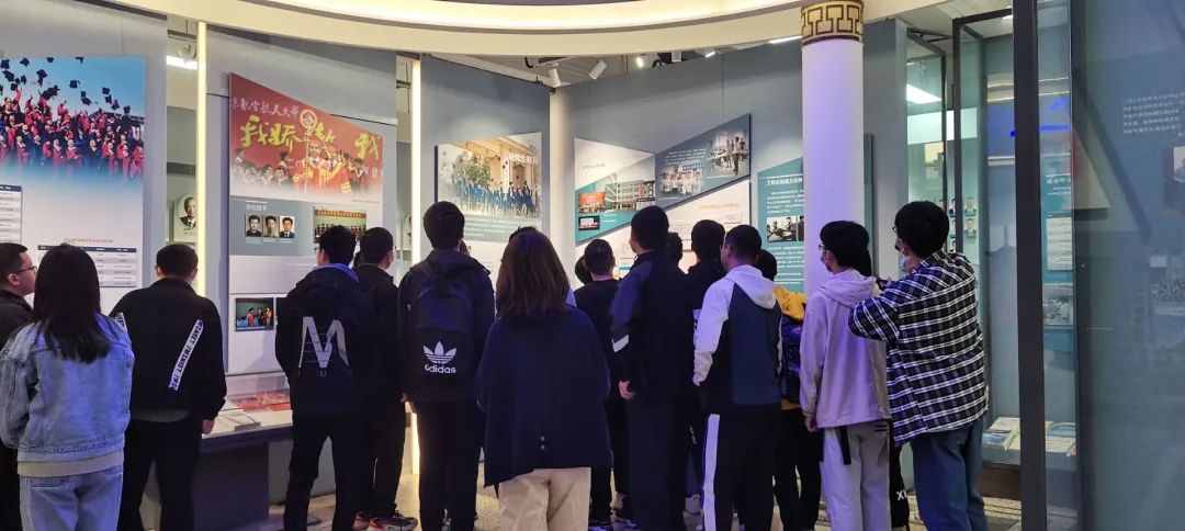 接着,同学们跟随讲解员走进了人才培养厅。首先展现的是我校建校以来的人才培养政策和理念的相关照片,有全国教育思想研讨会等影响深远、人才济济的学术大会,有我校优秀学子参加异彩纷呈的科创竞赛,也有出色学科的建设成果。同学们聚精会神地听着讲解员的介绍,目光随着讲述的内容落到这些照片上,被我校多样化的人才建设体系所吸引。在展厅的最后,班主任老师也为我们详细介绍了专业学院为人才培养投入的精力与资源。