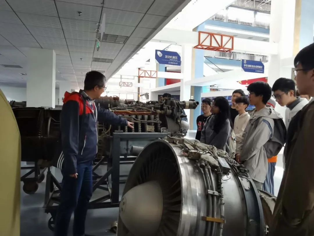 在航空馆,明故宫校区的张振刚学长为我们科普了每一架展品的基本构造,而本就是能源与动力专业的王英锋老师更是亲自为我们讲解发动机的结构和原理,原本复杂的发动机在王老师的细致解释下变得不再晦涩。