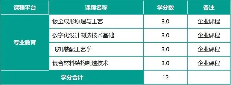 特色课程模块是专业教学计划中具有专业特色的课程,反映了飞行器制造工程的行业特殊性以及专业内容多样性,体现在专业知识的“深入”和“宽广”,涉及专业相关的新技术新方法的知识点的详细描述以及更深入的专业知识,用于学生对专业知识的进一步掌握和了解。