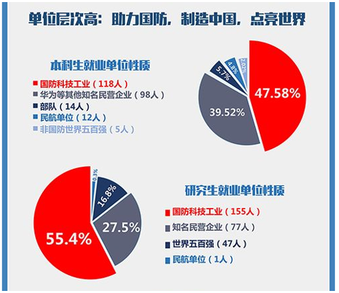 就业:毕业生在航空航天、机械设计与制造、材料加工以及计算机应用等行业和领域的研究院(所)、大中型企业、合资企业及高等院校从事航空航天产品制造、计算机辅助设计与制造、先进集成制造、数字化装备设计与制造、机器人集成与控制等领域的研究、生产、技术管理和教学等方面的工作。