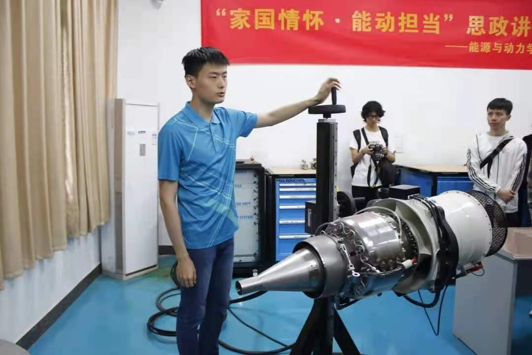 在讲解过程中,讲解员演示了试车台的使用方式,同学们也亲自进行了简单的尝试,切身感受到航空发动机的强大推力。