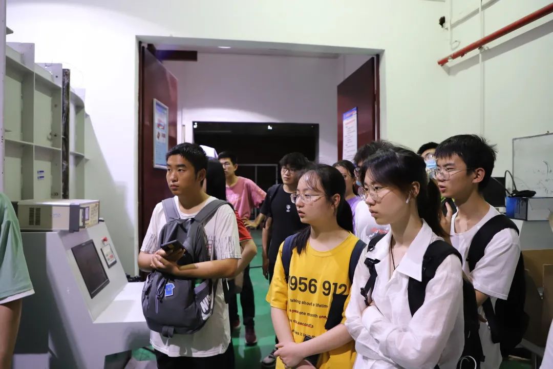 在这个实验室中,讲解员讲述了实验室的发展历程、科研成果和未来的研究方向。针对实验室中的设备,讲解员也向同学们重点展示了一种系统,它通过压力传感器进行损伤检测,从而监测飞行安全。精彩的实验展示大大激发了同学们的兴趣,也让同学们感受到了深入研究中学科交叉以及丰厚知识储备的必要性。
