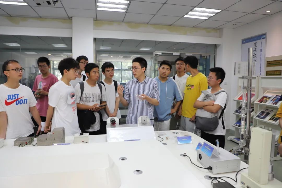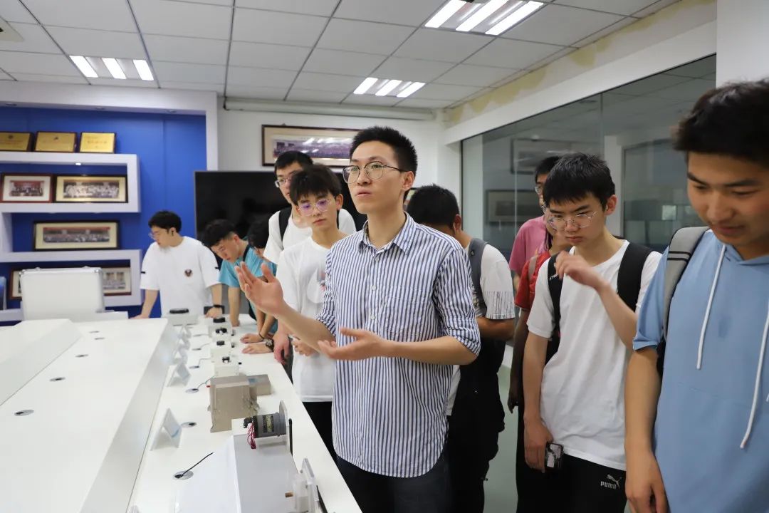 超声电机是一种将定子微观运动转化为转子宏观转动的精密仪器。在精密驱动实验室,讲解员向同学们展示了实验室中各种不同的电机,介绍了超声电机与电磁电机的不同,并为同学们演示了超声电机如何工作。随后,讲解员借助实验室墙壁上的展板,介绍了在赵淳生院士带领下,精密驱动实验室的发展历程以及研究成果,尤其是超声电机为我国航天事业做出来巨大的贡献,“嫦娥三号”“嫦娥四号”“嫦娥五号”等我国重大航天任务上都装配了超声电机。