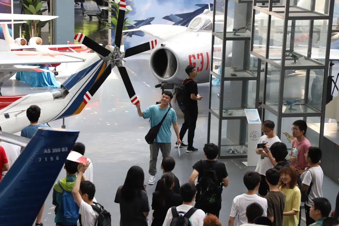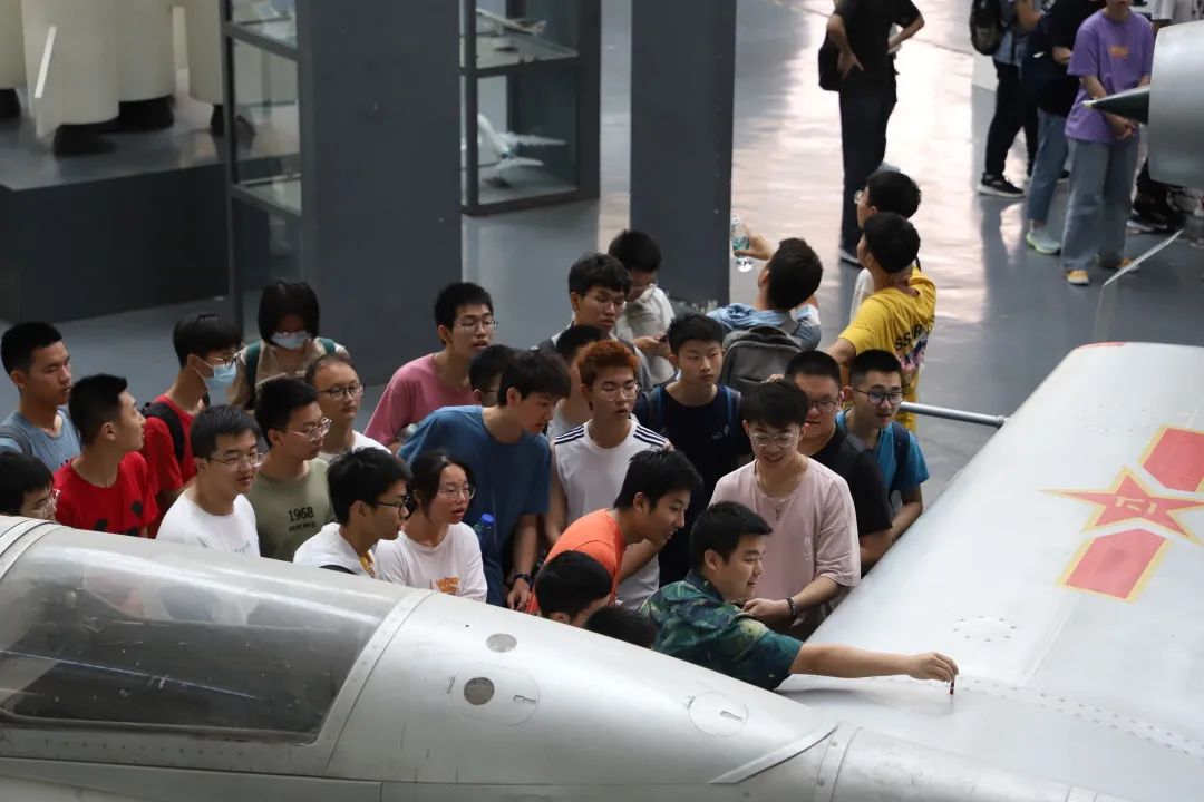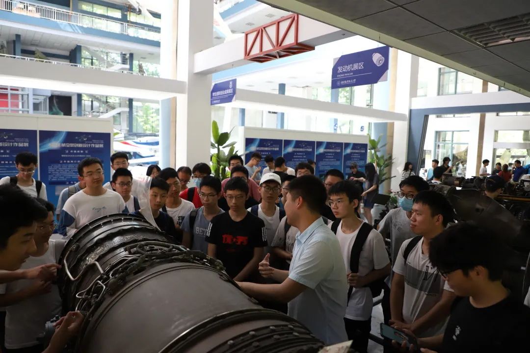 航空馆内,静静地陈列着对南航、乃至对中国发展都有着重要意义的“雄鹰”们——歼5、歼6、歼7、延安二号……讲解员耐心地讲解着每架飞机的研发背景、性能特点。每一架飞机也在无声地诉说它们的故事,岁月的斑驳痕迹仿佛是它们的功勋章。在“雄鹰”们身旁,摆放着被誉为“飞机的心脏”的航空发动机:涡喷-5、涡喷-6等。每一台发动机在退役后来到航空馆,将自己毫无保留地展示给同学们,发挥自己的余热。讲解员也细致地介绍航空发动机的工作原理,解答同学们关于发动机方面的疑惑。聆听着讲解,航空航天的种子在同学们的心中生根发芽,未来必将成长为参天巨木。