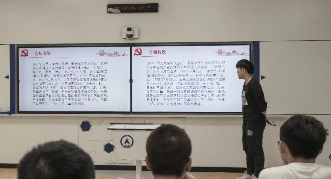 通过**达同学的讲述,同学们认识到井冈山会师并不是简单的两军合并,而是人民军队为了中国革命的共同目标,经历千难万险和艰苦探索换来的。许思豪同学认为,在今天的社会主义现代化建设事业中,我们也要有崇高的理想和坚定的信念,要有革命英雄主义精神和战胜任何困难的豪迈气概,不怕困难、勇于进取。