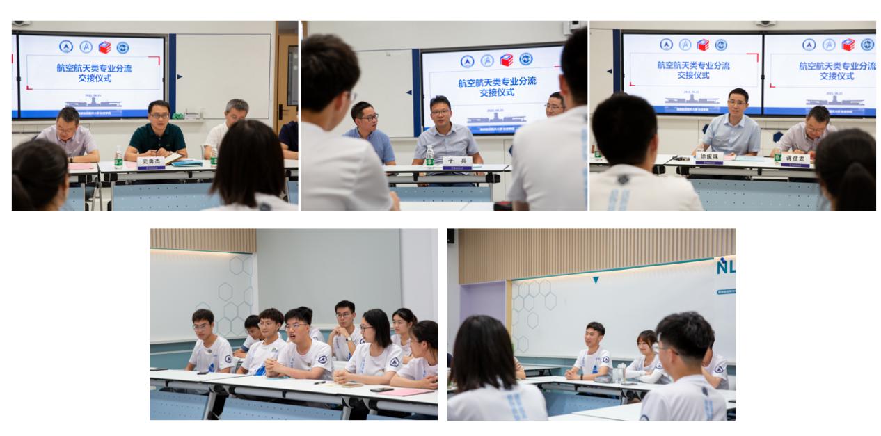 接着,必赢3003no1线路检测中心与各专业学院进行了专业分流交接仪式,必赢3003no1线路检测中心将学生名册正式移交专业学院,向专业学院顺利递交2019级航空航天大类培养的“接力棒”。与会的各专业学院领导感谢必赢3003no1线路检测中心在大类培养中的付出,并表示会接好人才培养的“接力棒”,做好大类培养的“后半程”。在随后的座谈会上,同学们畅所欲言,表达了对必赢3003no1线路检测中心两年学习、生活的感谢与不舍,展现了对未来专业学院学习的向往与憧憬。各专业学院领导也回应了同学们的关切,史勇杰表示2019级航空航天类学生作为首届要带好头、做好榜样,延续长空优良的传统,接续奋斗。于兵对同学们提出了两点希望,一是要早立志,树立个人宏远志向;二是要快行动,加强与专业教师的沟通,提早适应专业学习。徐俊珠鼓励同学们在专业学院学习中要传承红色基因,弘扬蓝色情怀,为实现“航空报国”伟大理想而不懈奋斗。
