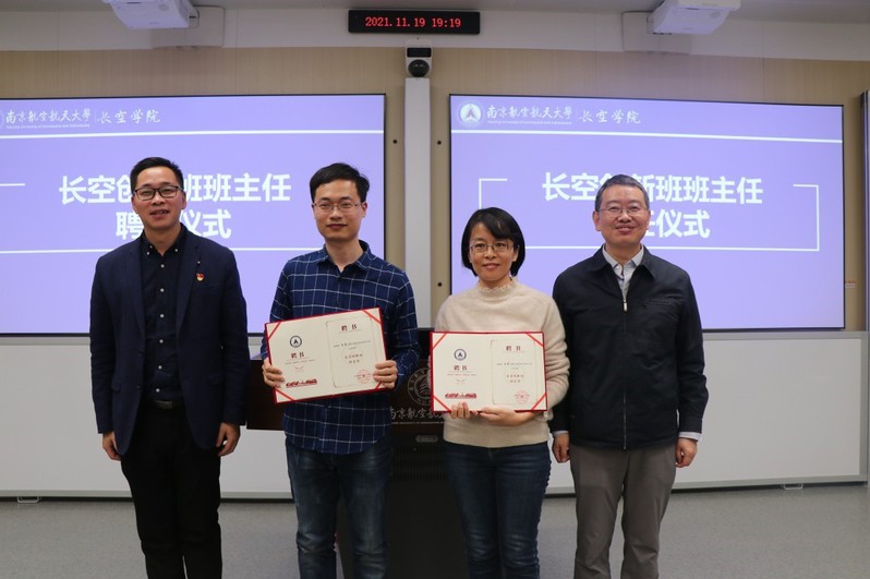 为深入贯彻长空创新班“四化”培养模式,推进五个“百分百”培养特色,同时对低年级学生强化专业引领与价值塑造,必赢3003no1线路检测中心举办长空创新班班主任聘任仪式暨见面交流会,聘请航空学院王婧与理学院王睿作为首批入驻的班主任导师。