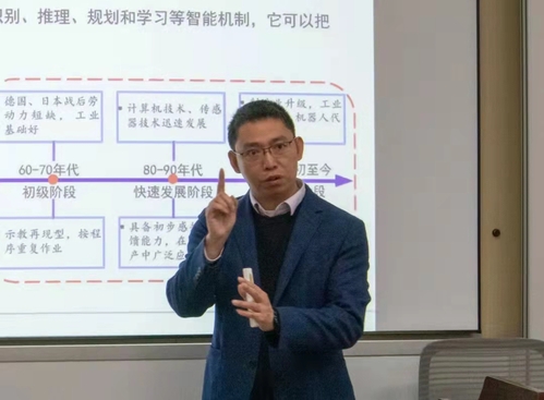 活动伊始,陈柏教授回顾了机器人兴起至今的百年历程,讲述了近现代中外伟人对机器人行业作出的重大贡献,强调了计算机控制对机器人发展的深远影响。报告中,陈柏教授认为机器人有三个发展阶段——示教再现机器人、有感觉能力的机器人、智能机器人,并着重介绍描绘了当前所处的智能机器人时代。