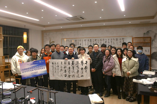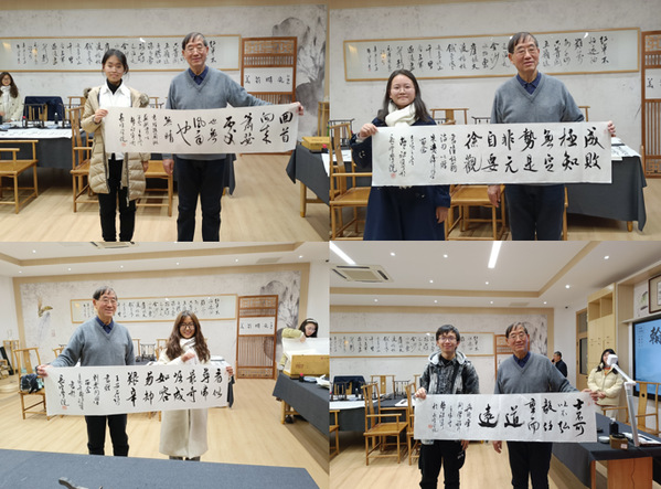 以汉字为载体的中国书法,是中国人独一无二的文化创造,呈现出鲜明的东方美学特征,于笔墨挥洒间丰盈着中国人的精神家园。交流过程中,同学们近距离感受书法艺术的独特魅力,对其有了更深刻的了解。除此之外,费祖宁还现场题字赠予长空学子,希望他们从诗文中汲取古人智慧,学习古人精神,成才养德,锐意进取,牢牢把握书法文化的当代价值,大力弘扬中华优秀传统文化。