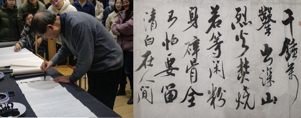习近平总书记在党的二十大报告中指出:“中华优秀传统文化源远流长、博大精深,是中华文明的智慧结晶”。书法艺术不仅仅是文人书斋里的陶然自乐,更承担着撰文记史、濡墨抒情的重要使命。“故书也者,心学也;写字者,写志也。”通过讲述天下第一行书《兰亭集序》与第二行书《祭侄文稿》的创作历史,费老认为书法写作与个人的才学、品德与志向一脉相承,提醒学生提高文学艺术修养,保持“真善美,思无邪”的本性与初心。