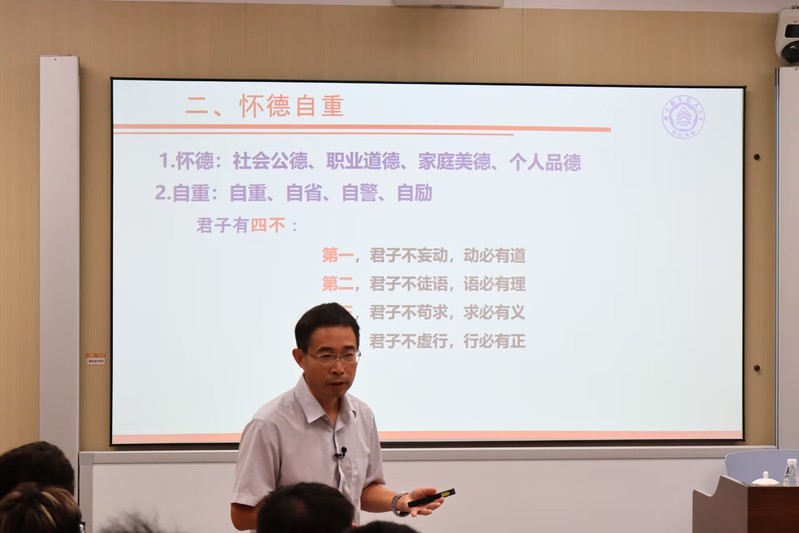 杭育新结合个人思考和经历,提出当代青年要做到怀德自重。要强修养,以“慎独、慎初、慎微、慎友”为处事原则,提升个人素养。要知敬畏,心有敬畏,行有所止,在面对党、人民、法纪时,时刻秉持敬畏之心。要做一个阳光人,无论学习还是工作,习惯在“聚光灯”下主动接受监督,以阳光之心处阳光之事。