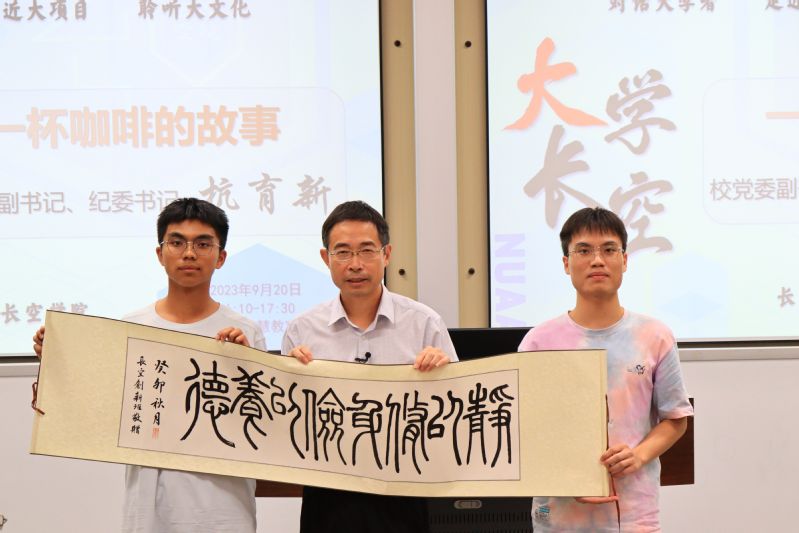 交流最后,长空创新班学生代表为杭书记送上书法作品。