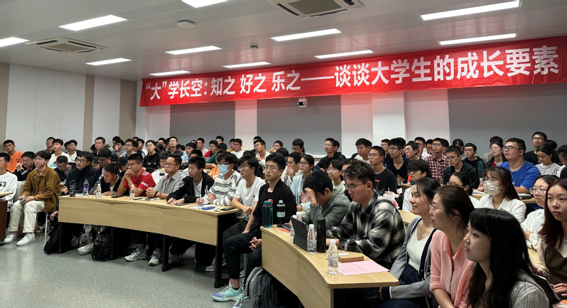 最后,熊克从以好奇心驱使的自由探索为主的“小科学”和以国家目标牵引的科技活动为主的“大科学”两个角度,以著名的诺奖孵化地“卡文迪许实验室”和NASA的喷气推进实验室为例,引出对同学们在科研方面的期望——“起好步,入好门”,希望同学们能够将科学意义与国家重大需求紧密结合,明确自己的“知之”“好之”“乐之”,即个人动机、兴趣以及是否有坐冷板凳且淡泊名利的决心。同时,就当下热点 “内卷”现象,熊克结合奥运冠军及2023年诺奖获得者的故事,对长空学子提出建议,期望同学们:磨炼内心、合理规划,加强阅读、交流、思考,坚决杜绝任何形式的“兴奋剂”,以高站位、强定力、实作风、明态度开启大学新篇章。