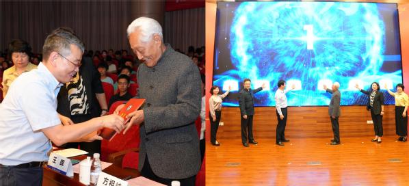 揭幕仪式后,方祖岐为在场师生带来题为《我从抗美援朝战场走来》的报告。方祖岐从抗美援朝的历史意义、奋战过程和亲身经历三个方面展开交流。他动情回忆道,“参加抗美援朝战争,是我一生中最荣幸的事。我主要负责志愿军装甲兵指挥所的机要通信任务。透过一道道电波,我‘认识’了许多伟大的志愿军英模,听到了无数英勇奋战、可歌可泣的英雄故事。当时,我们和敌人的作战装备差距是‘天上地下’,赢得战争靠的是血肉之躯、爱国主义情怀和对党的信仰。”借此,方祖岐也勉励在场学生,“人的潜能是无限的。作为青年学子,要敢于挑战自我,为中华民族伟大复兴贡献自己的一份力量。”