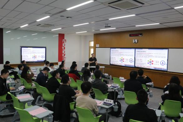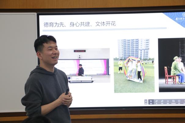 庞依达作学风建设数据分析专题汇报。他通过详实的数据帮助班主任全面了解我院各年级、各班级学风现状和重难点课程学业表现,并围绕学业监督、学支帮扶、师生互动等方面于班主任老师进行交流。